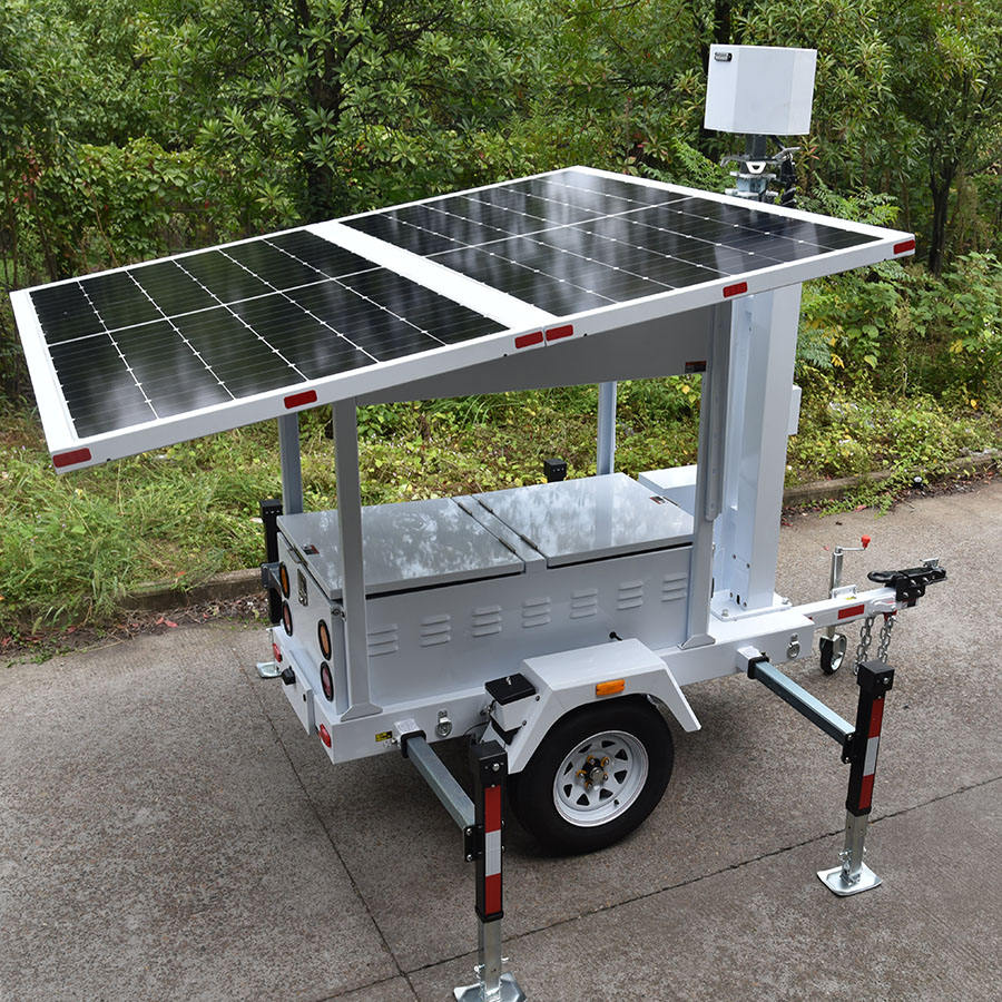 The mobile solar monitoring trailer is composed of monocrystalline silicon solar panels, gel batteries, a 6-meter electric mast, trailer structure, wear-resistant tires, stable support legs, and high-definition monitoring cameras, ensuring that the product as a whole is more durable.